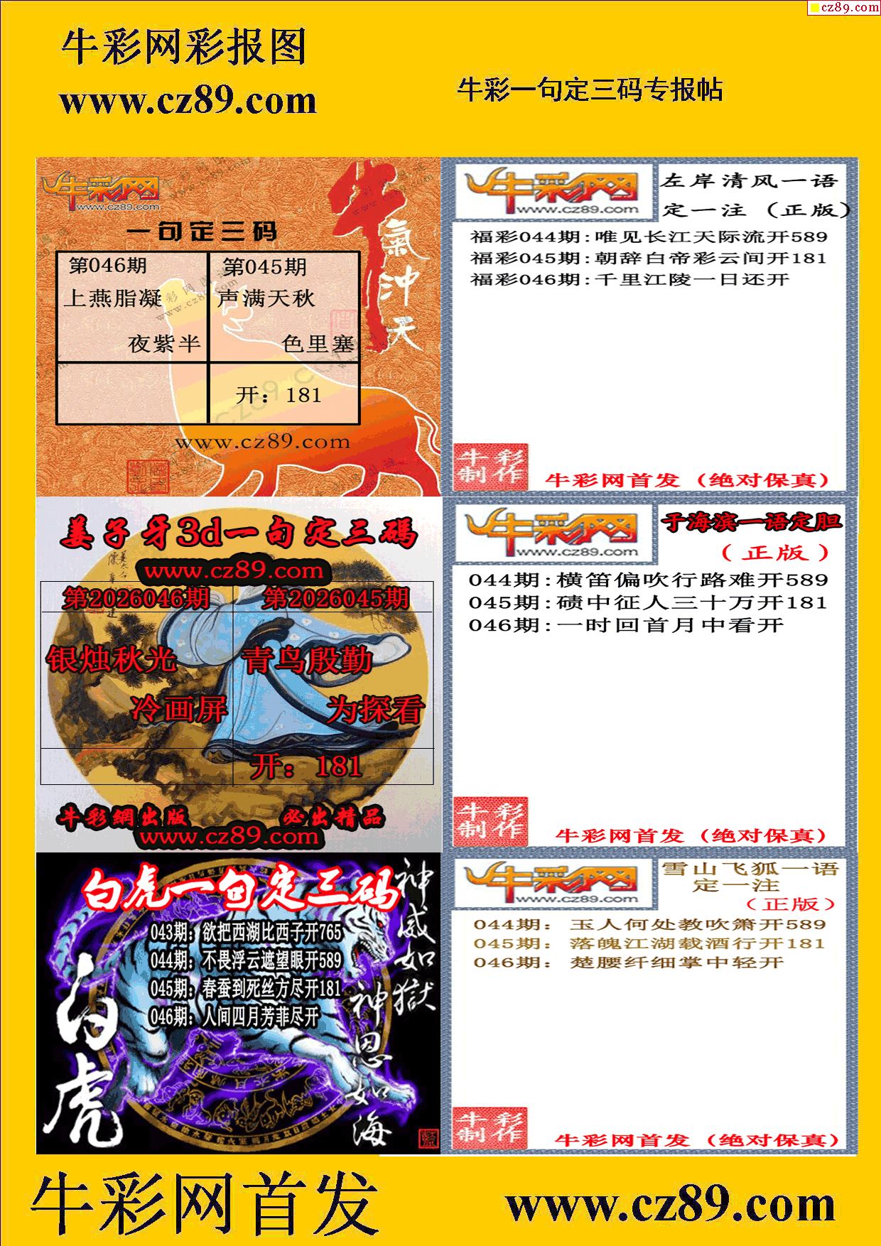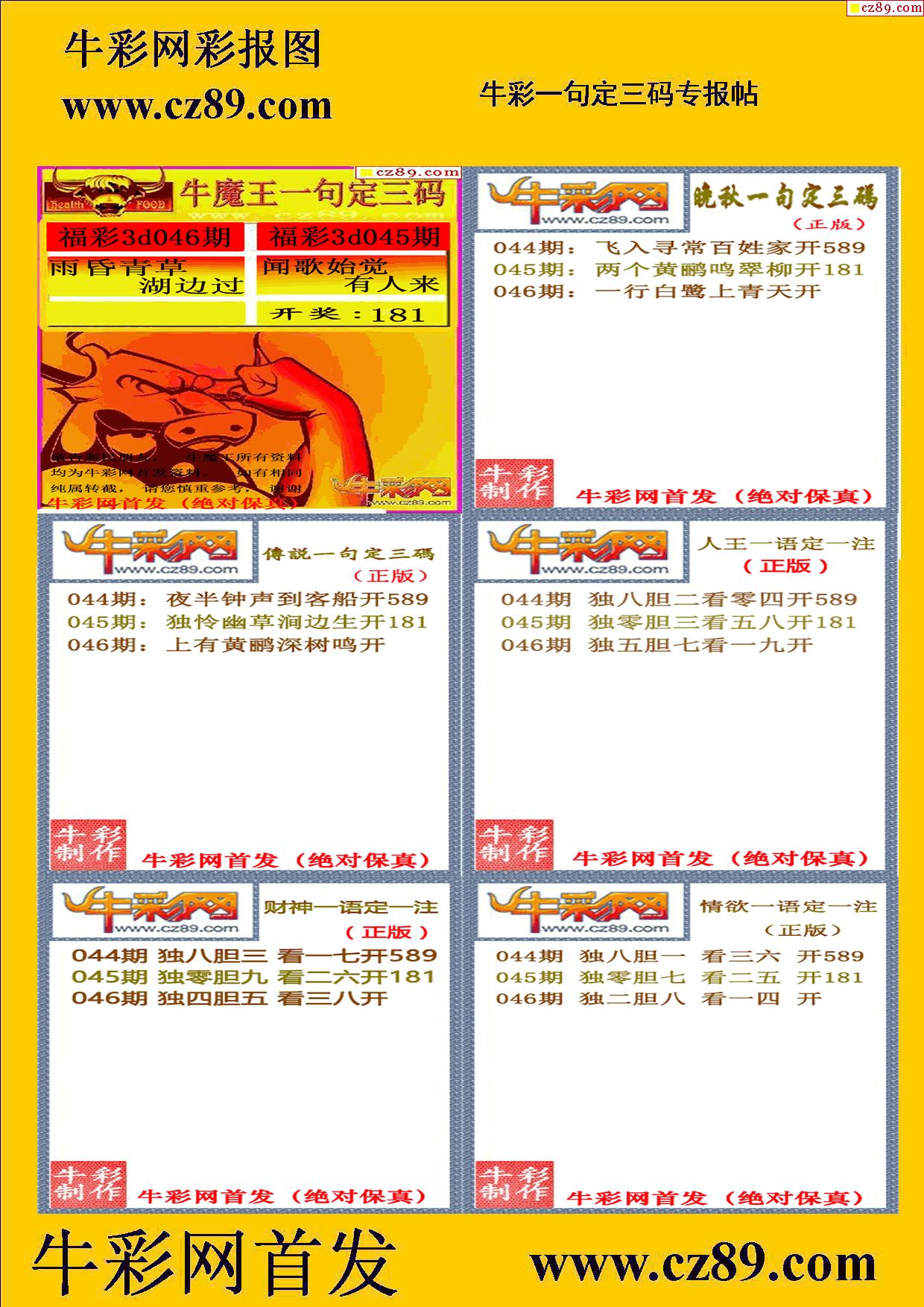 2026046期牛彩一句定三码
