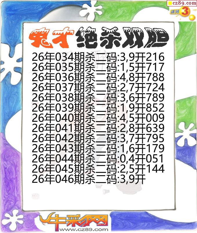 26年046期公孙宇P3杀码图