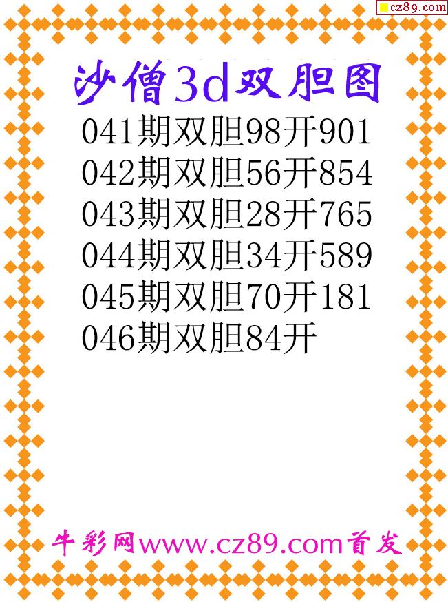 沙僧双胆26046期3d原创图谜