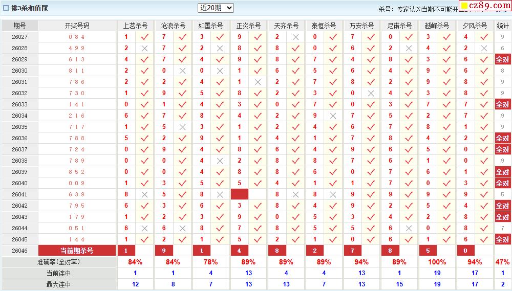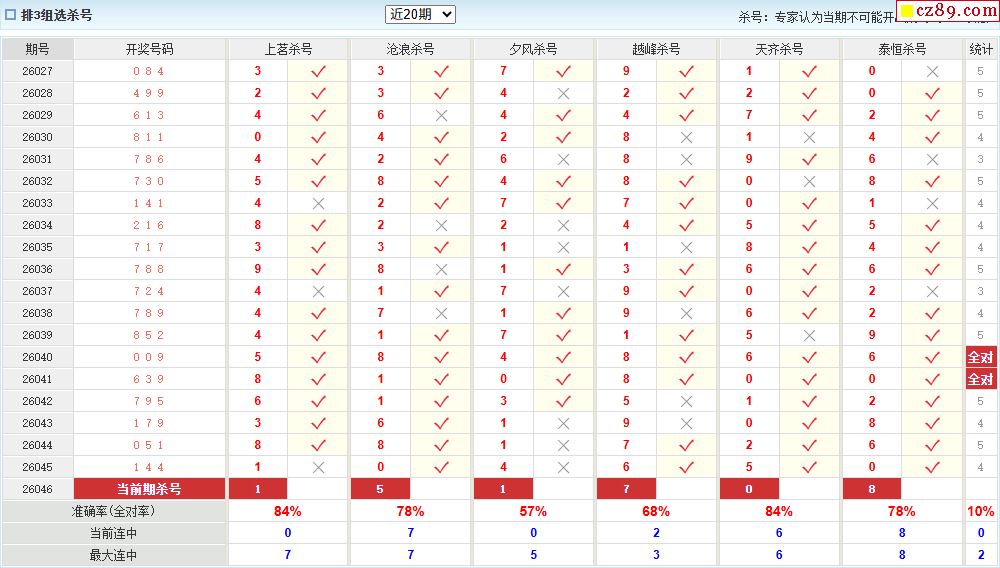 26年046期彩宝贝专家体彩P3杀号定码图表