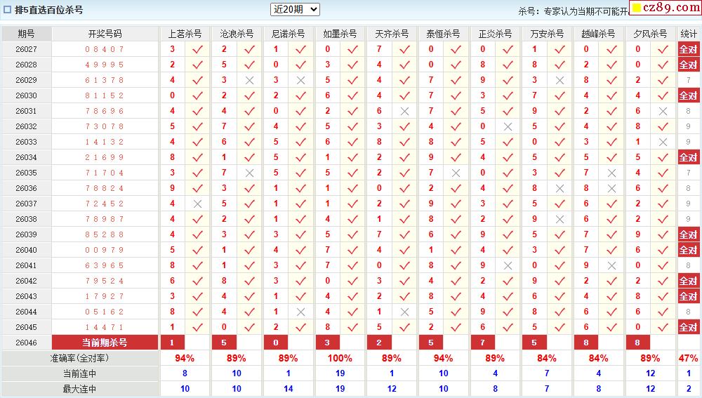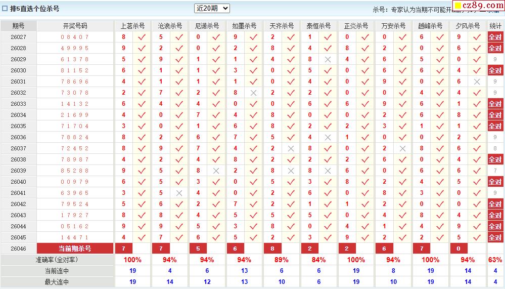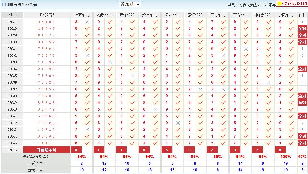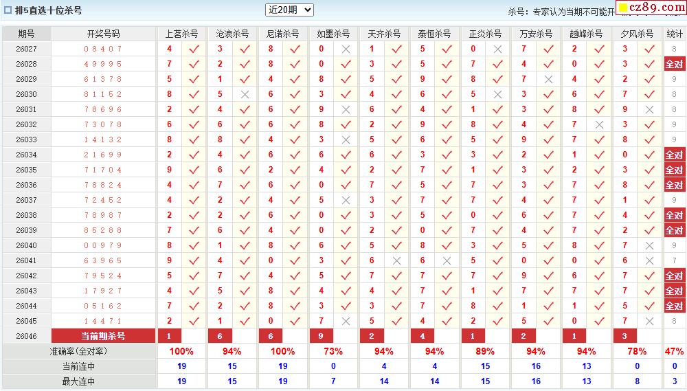 046期彩票专家体彩P5杀号推荐图表