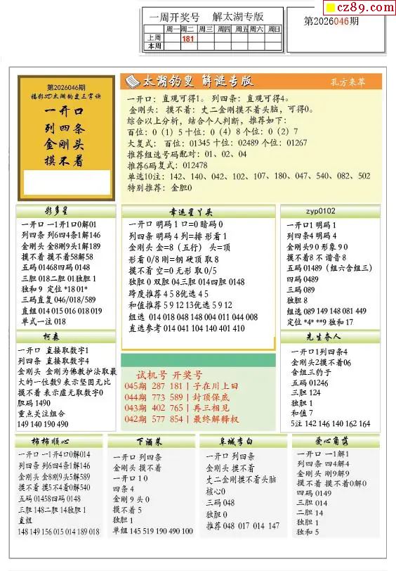 046期福彩3D开机号645 对应码486 牛彩关注数996 金码6