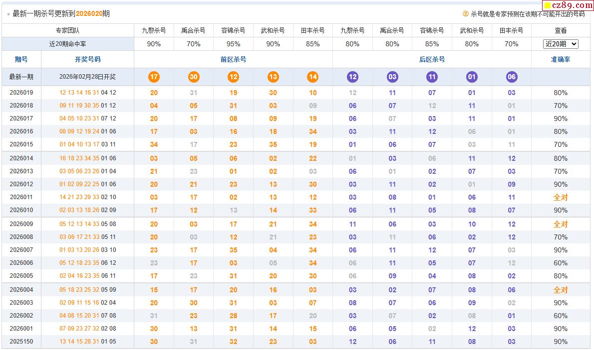26年020期彩票专家超级大乐透前后区杀号图表
