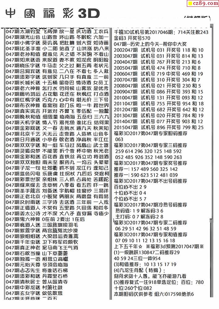 杀手+鑫马快报+字迷汇总26年047期3d图谜