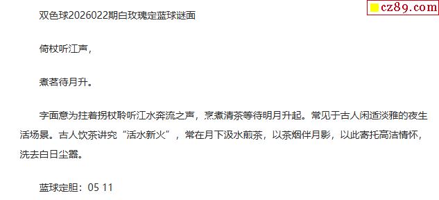 26年福彩双色球022期 白玫瑰定蓝球字谜