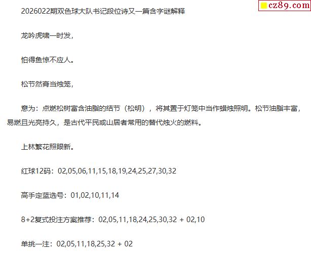 26年福彩双色球022期 大队书记段位诗另一篇