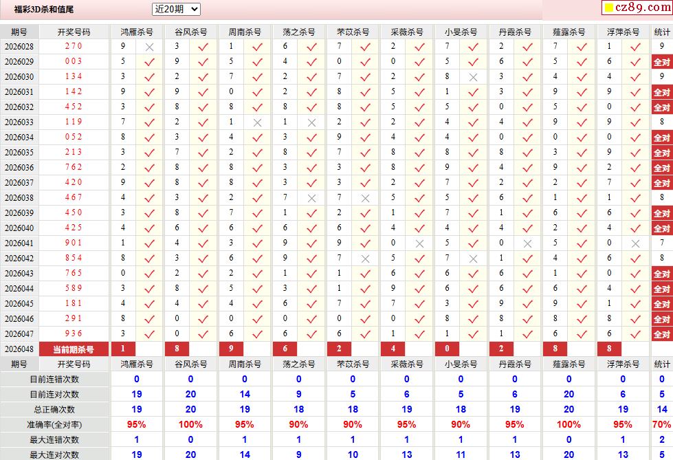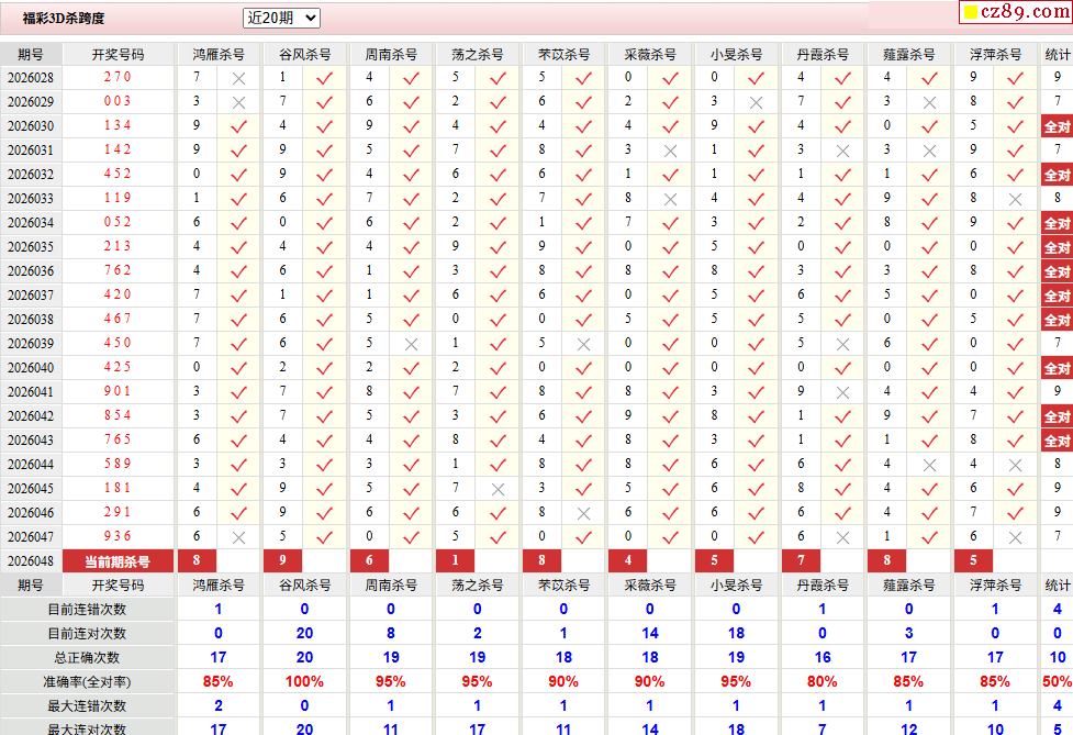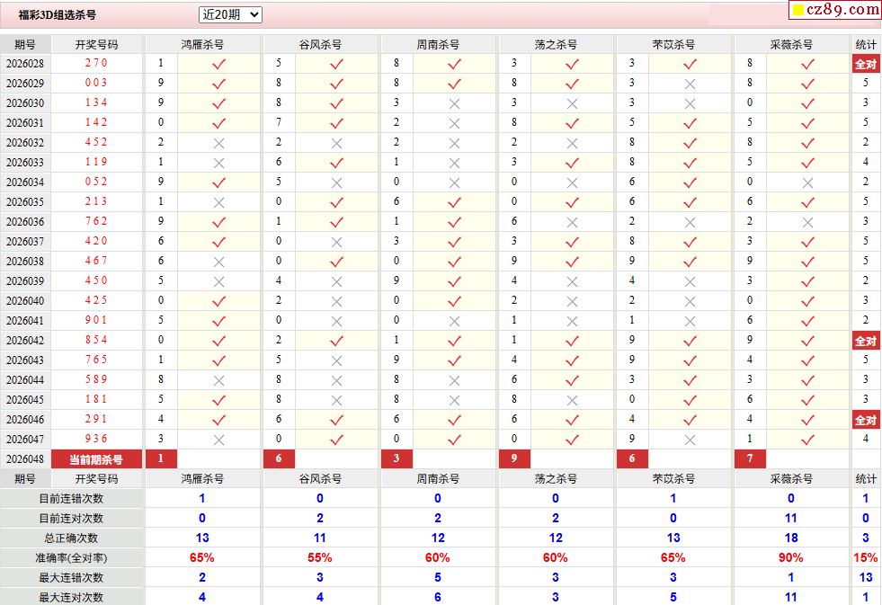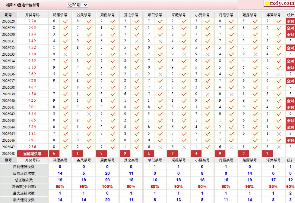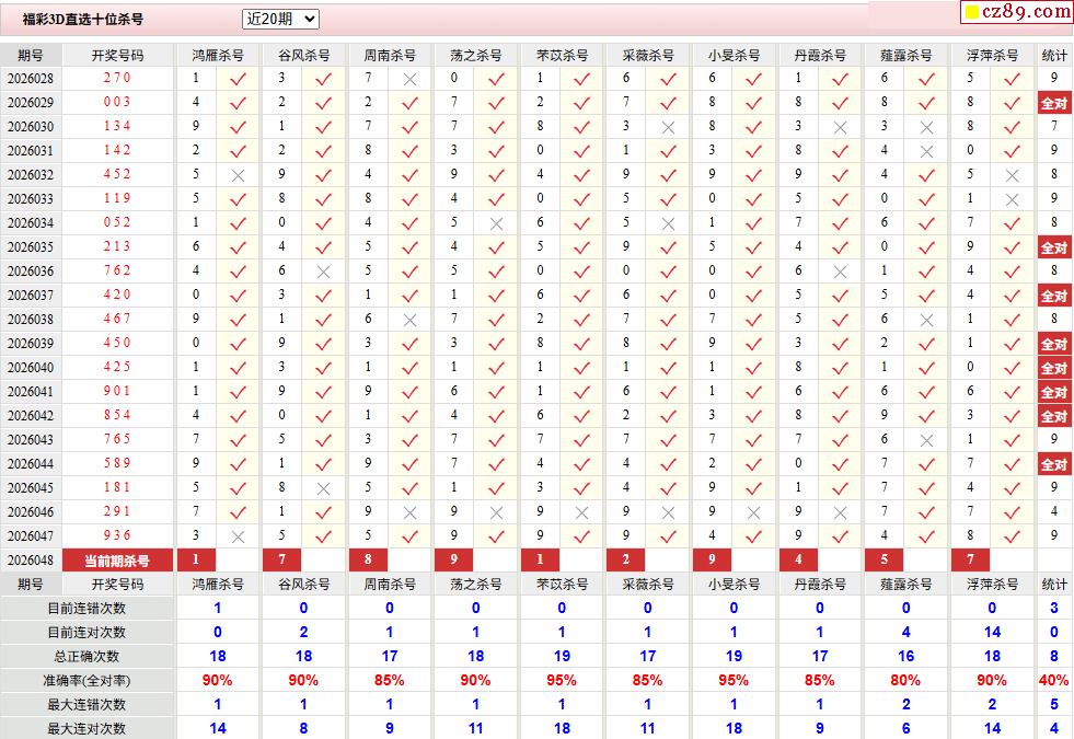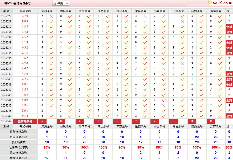 26年048期彩宝贝专家福彩3D杀号定码图表