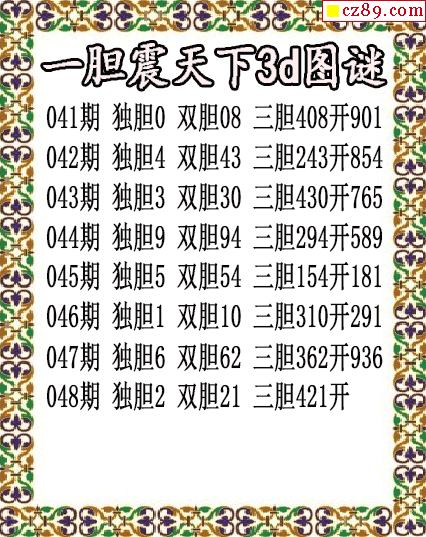 一胆震天下独胆2026048期3d图谜(原创)