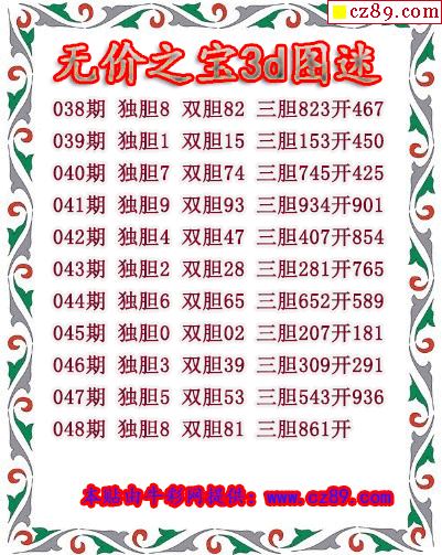 无价之宝送胆2026048期3d图谜(原创)