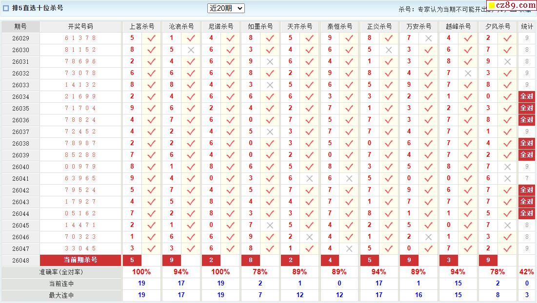 048期彩票专家体彩P5杀号推荐图表