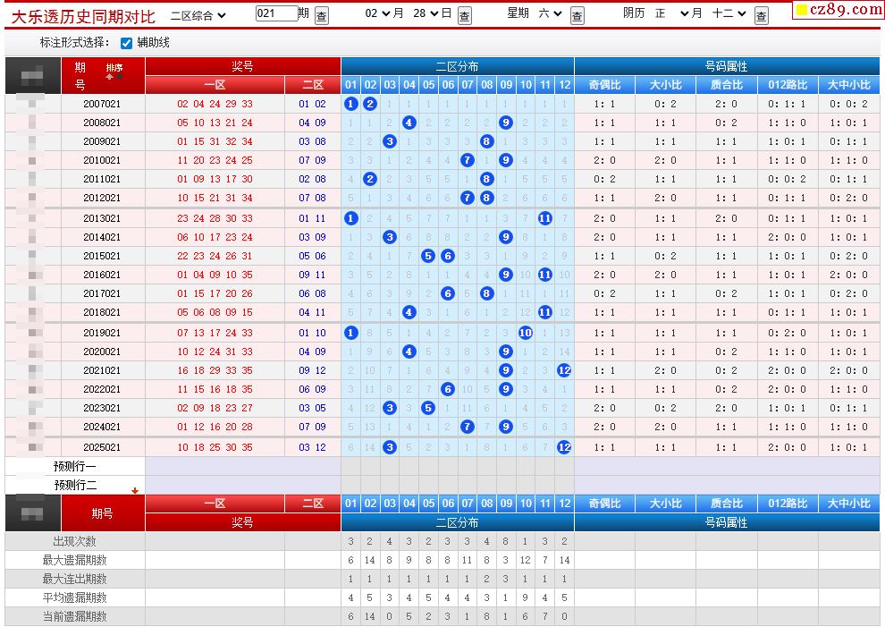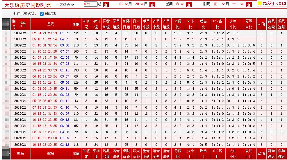 021期大乐透历史同期对比图