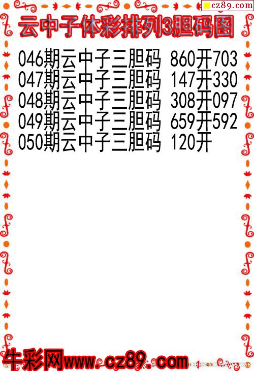 26年050期云中子体彩排列3胆码图