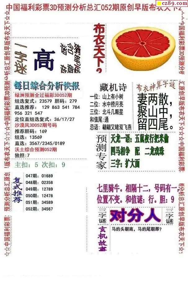 052期 彩吧彩报字谜版