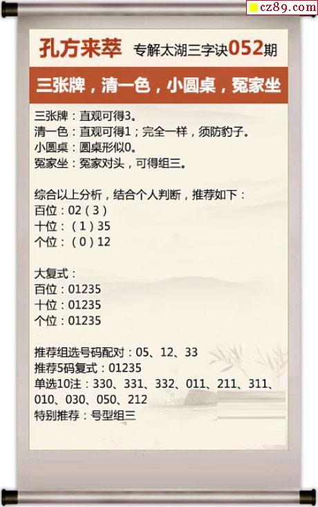 解谜大师26年052期太湖解释之 三张牌