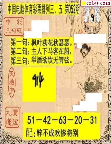 e族2026年052期体彩排列3图谜