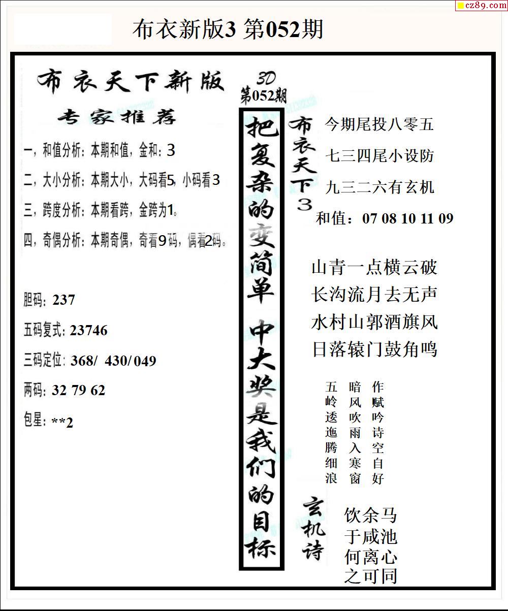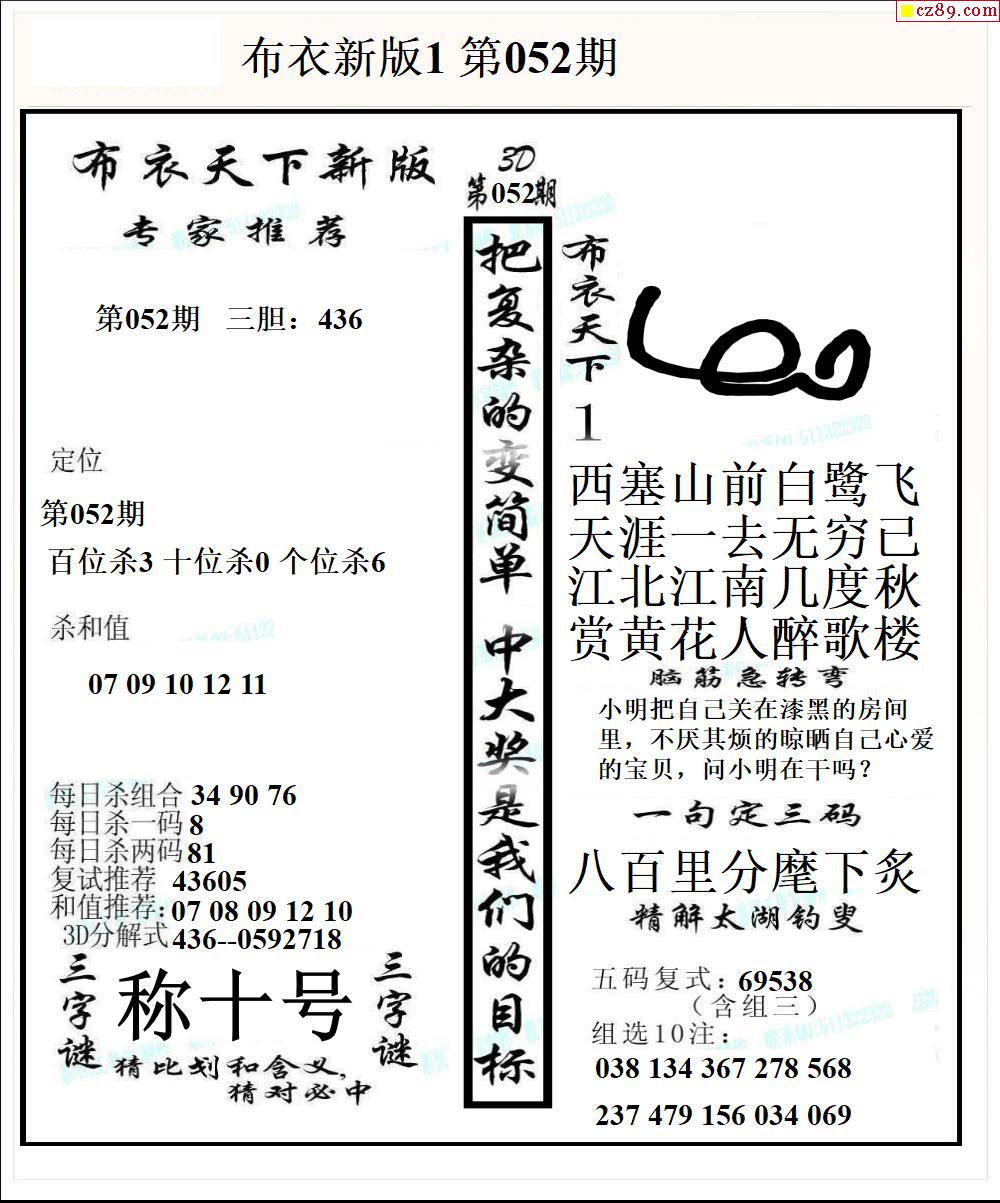 新布衣天下26年051期3D图谜