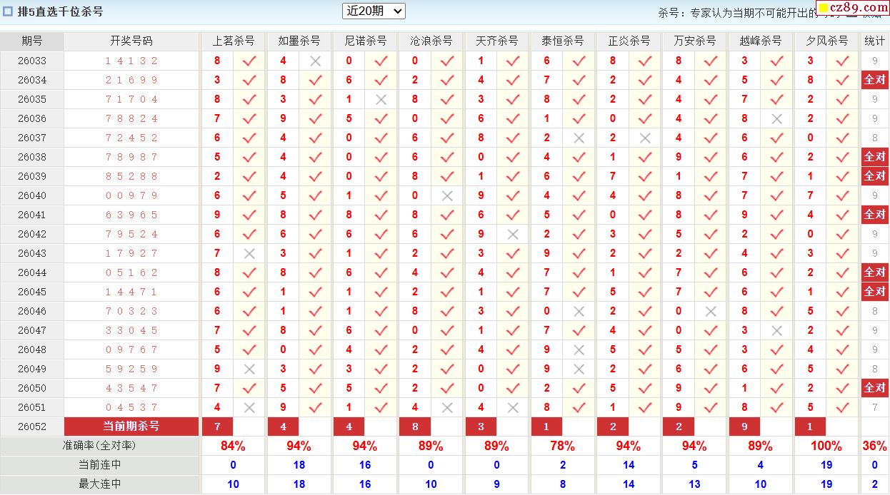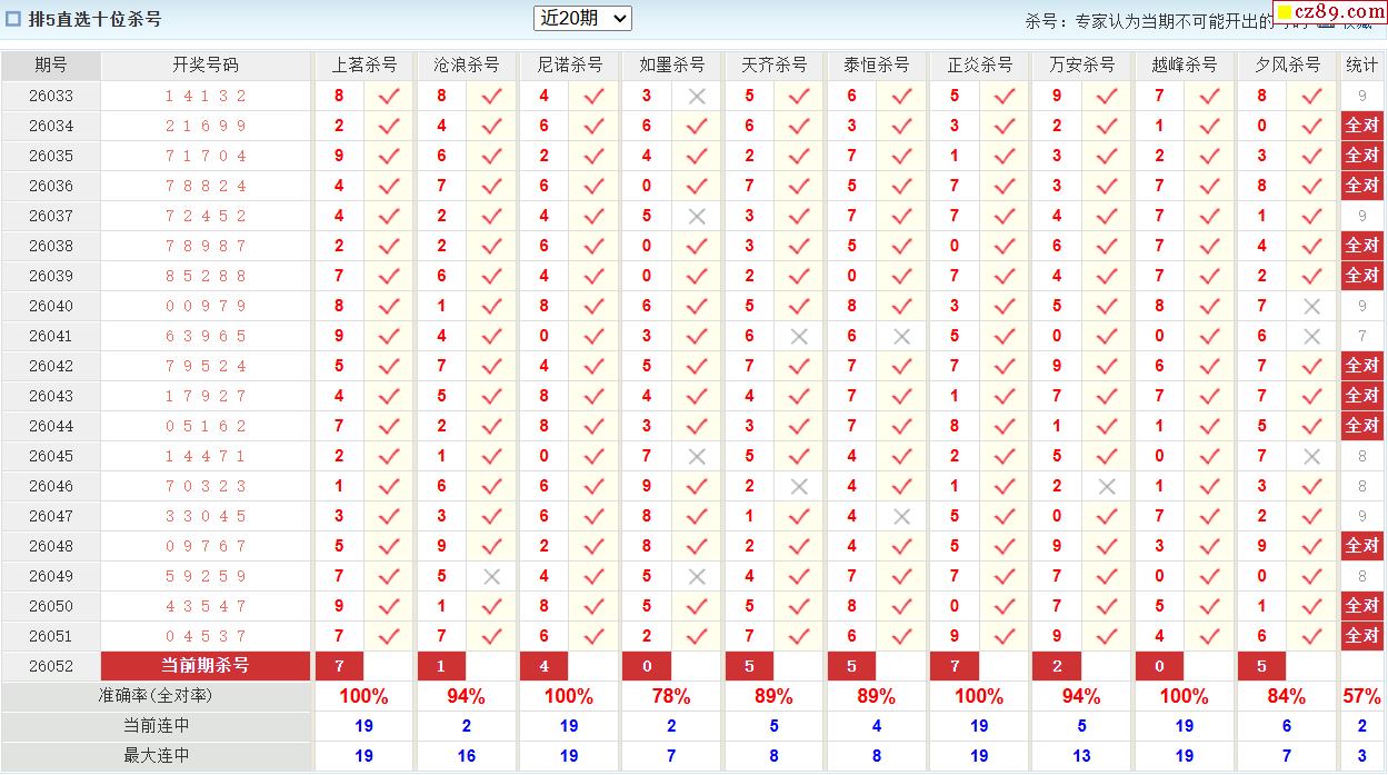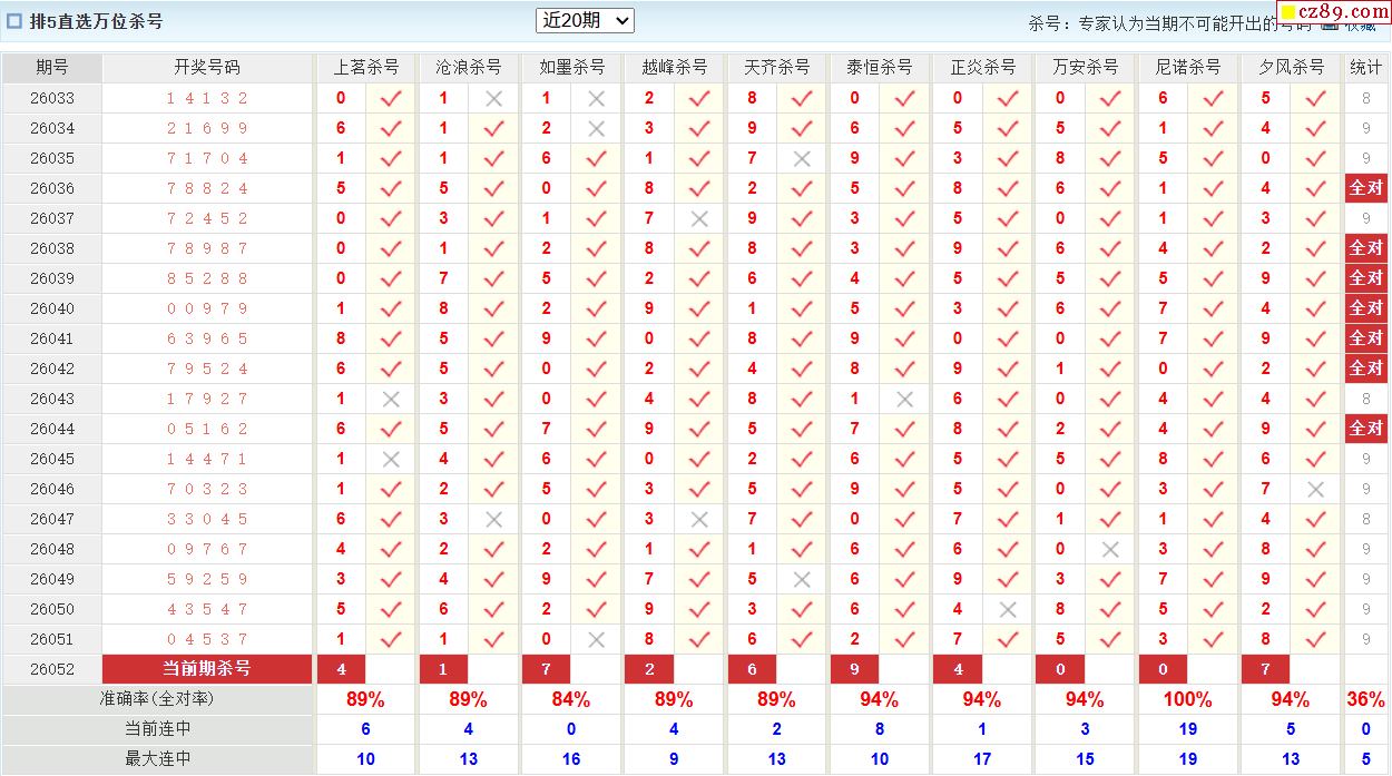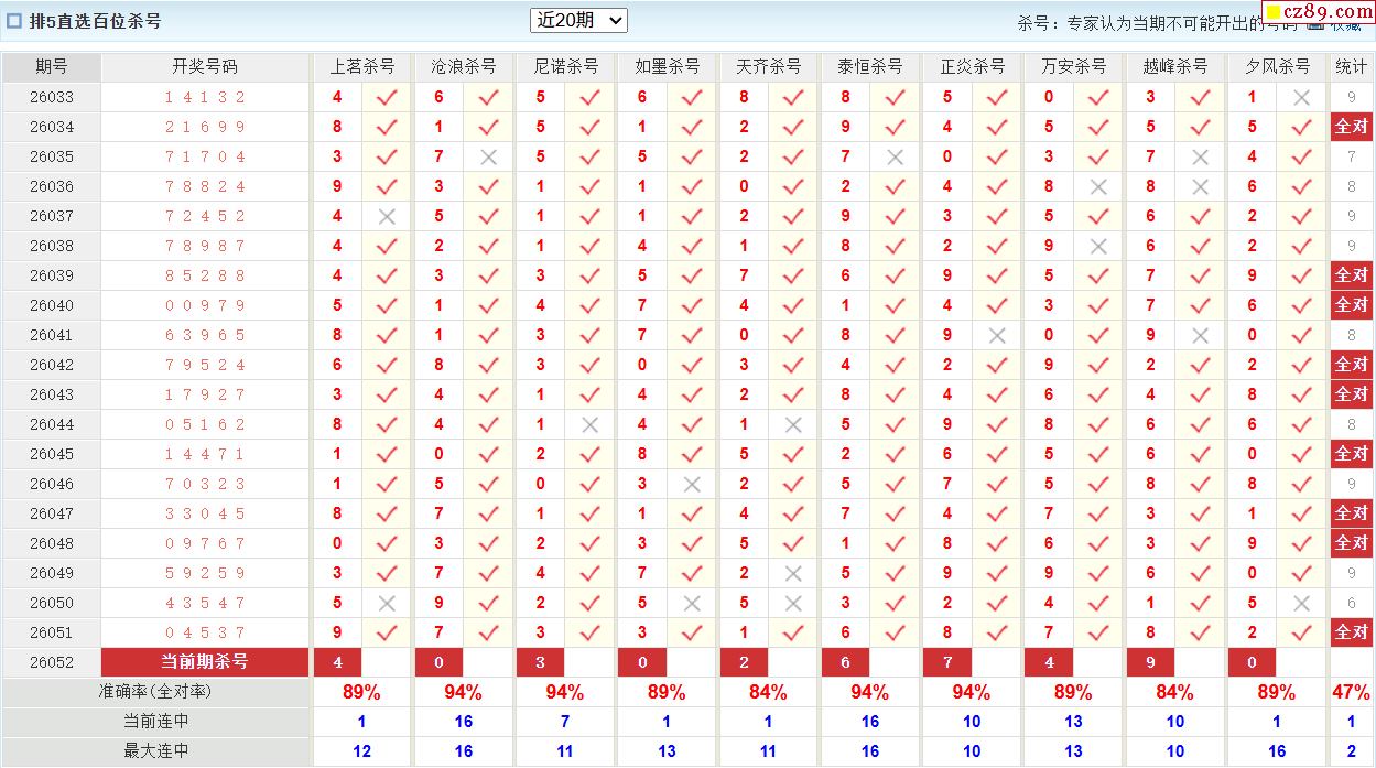 26年052期彩宝贝专家体彩P3杀号定码图表