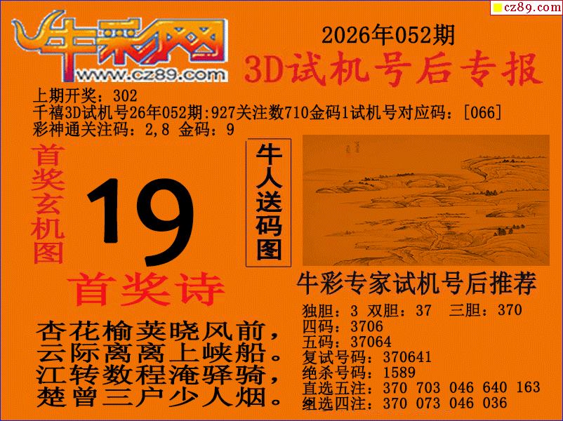牛彩版3D预测彩报图26年052期打印版