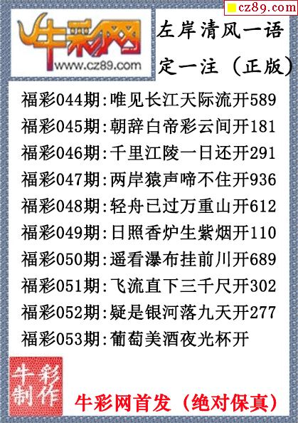 2026年053期七绝圣手3d和尾字谜【牛彩网...