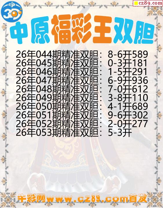 中原福彩王双胆053期3d图谜