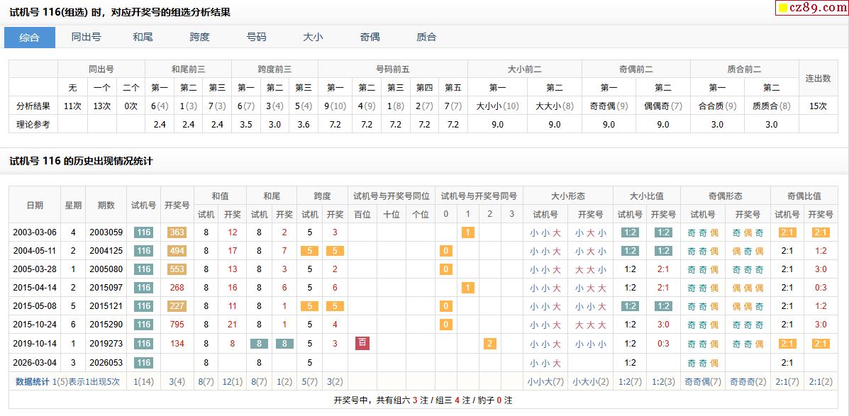 26年053期福彩3d试机号116