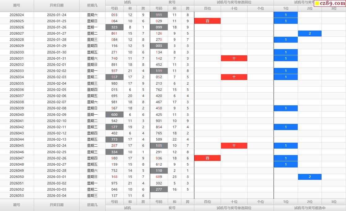 26年053期铁人铁胆3d试机号后分析