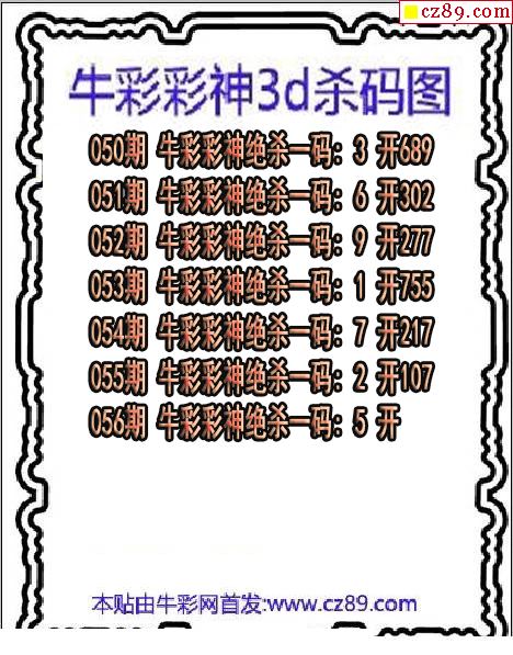 牛彩彩神杀码2026056期3d图谜(原创)