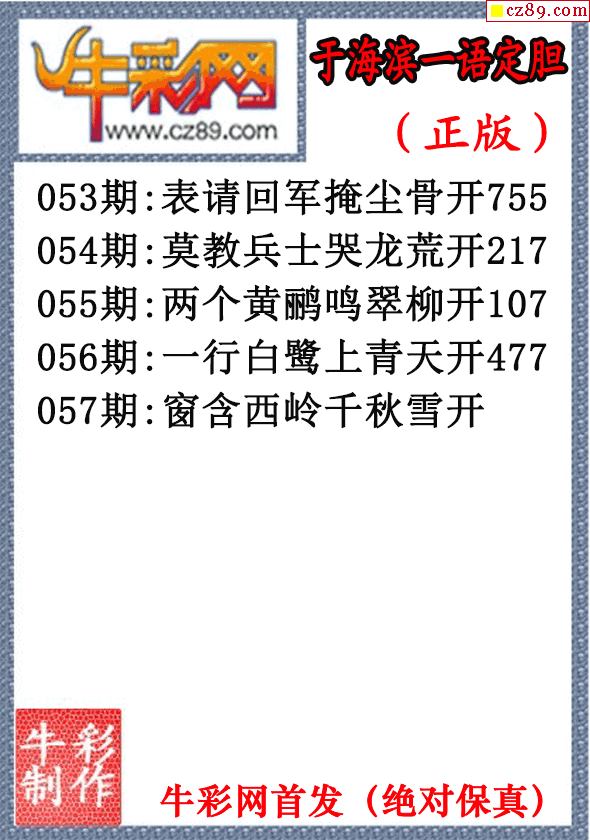 2026年057期七绝圣手3d和尾字谜【牛彩网...