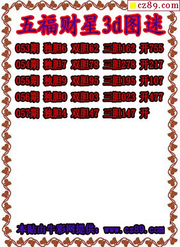 五福财星三胆2026057期3d图谜(原创)