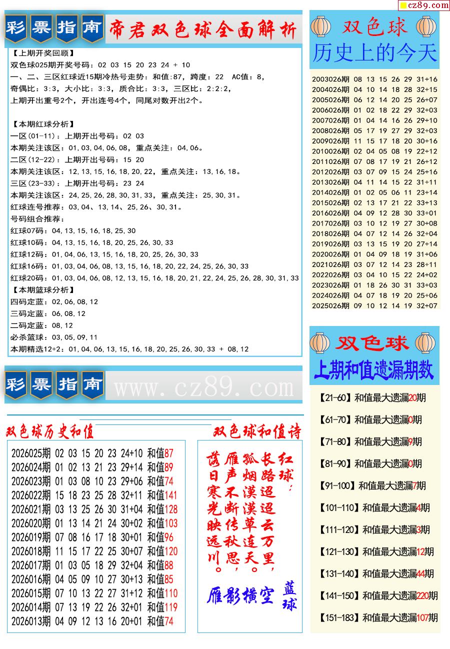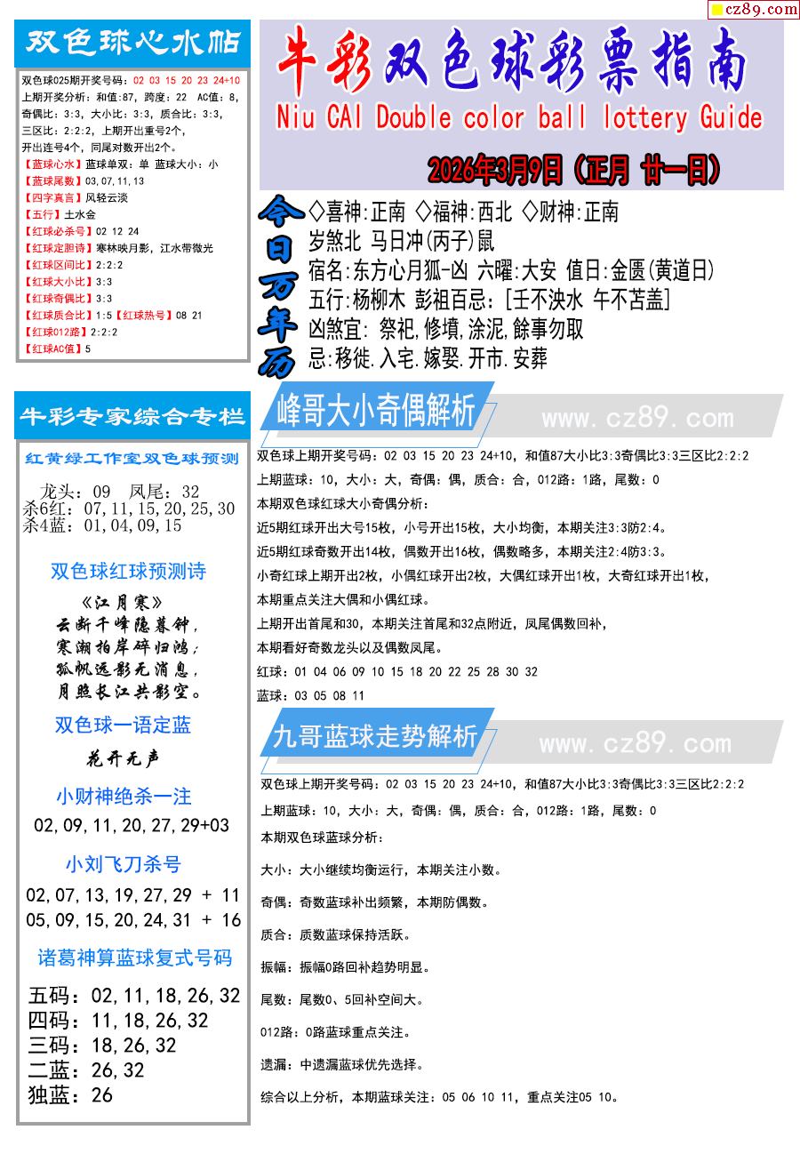 26年025期双色球彩票指南【牛彩版】