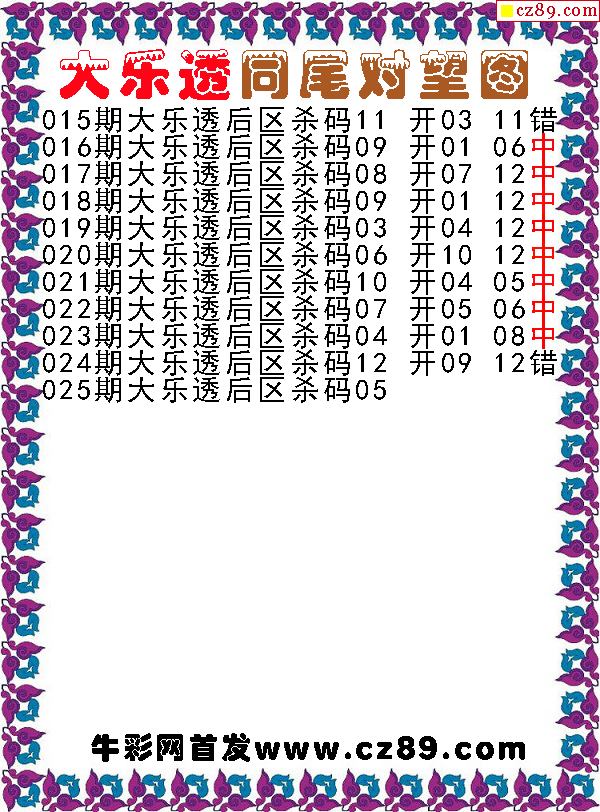 大乐透2026025期同尾对望后区杀号图谜 ...