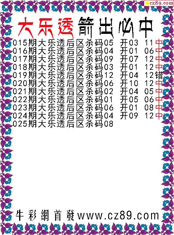 大乐透2026025期箭出必中后区杀号图谜 ...