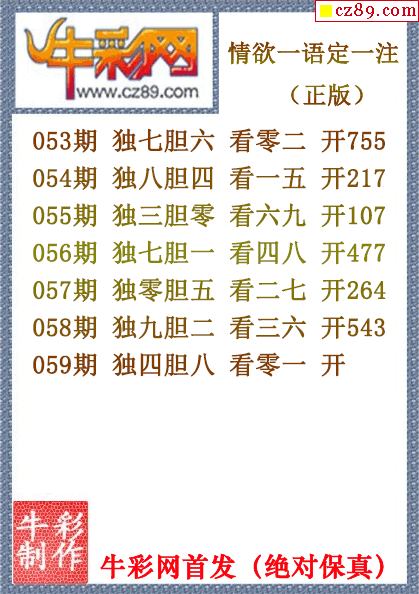 2026年059期白娘子3d跨度字谜【牛彩网特...