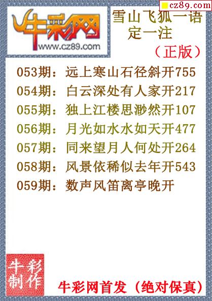 2026年059期七绝圣手3d和尾字谜【牛彩网...