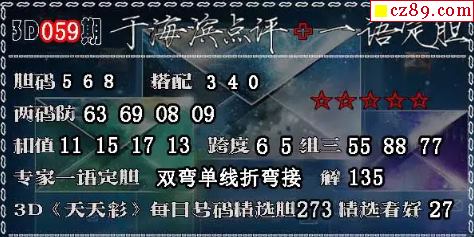 3D 《天天彩》每日号码精选胆273 精选看好27