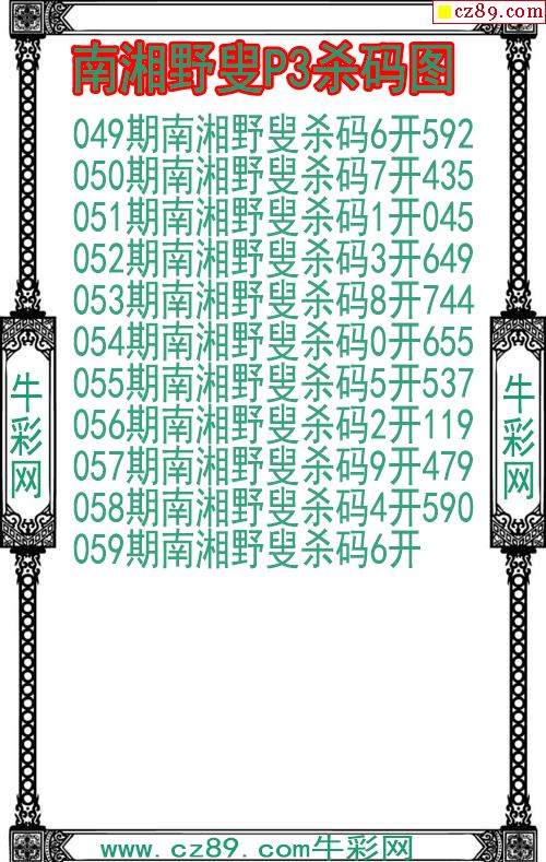 26年059期南湘野叟P3杀码图