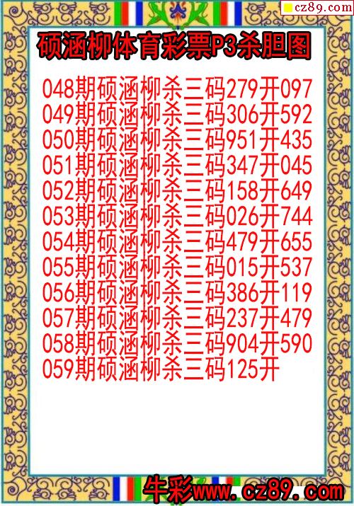 26年059期硕涵柳体育彩票P3杀胆图