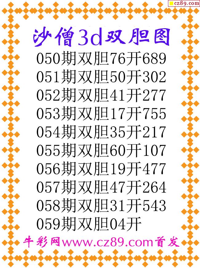 沙僧双胆26059期3d原创图谜