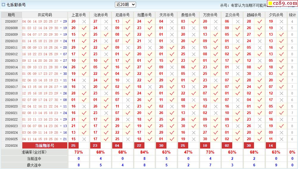 七乐彩026期 澳客专家杀号码预测推荐