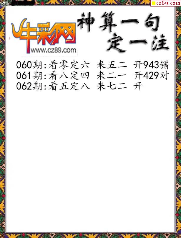 福彩3D2026062期神算一句定三码字图谜