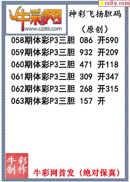神彩飞扬三胆063期体彩P3图谜(原创)
