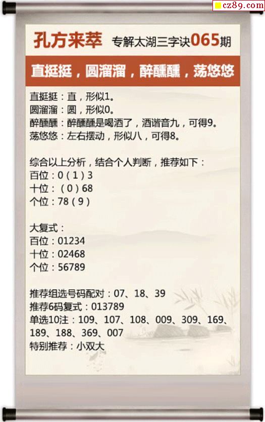 仔仔解065期3D太湖玄机字谜 圆溜溜