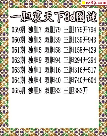 彩摘藏机图2026065期3d图谜