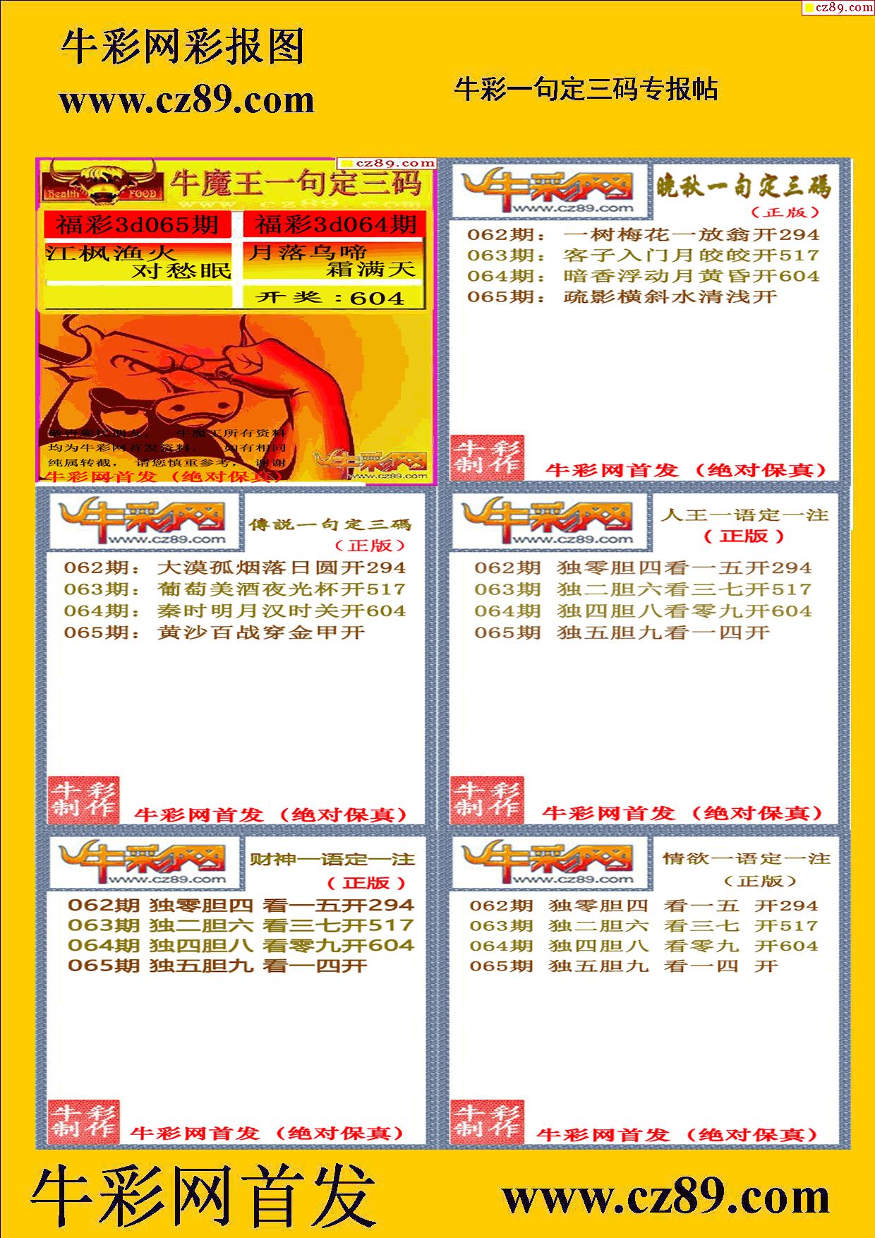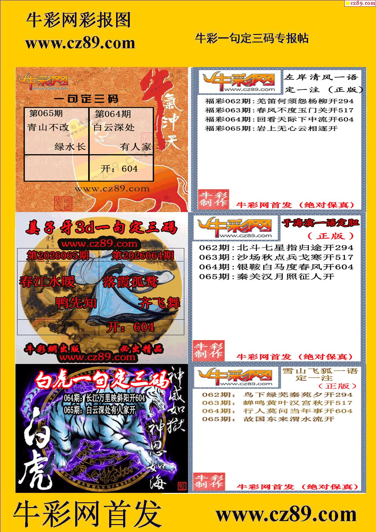 2026065期牛彩专家一句定三码彩报