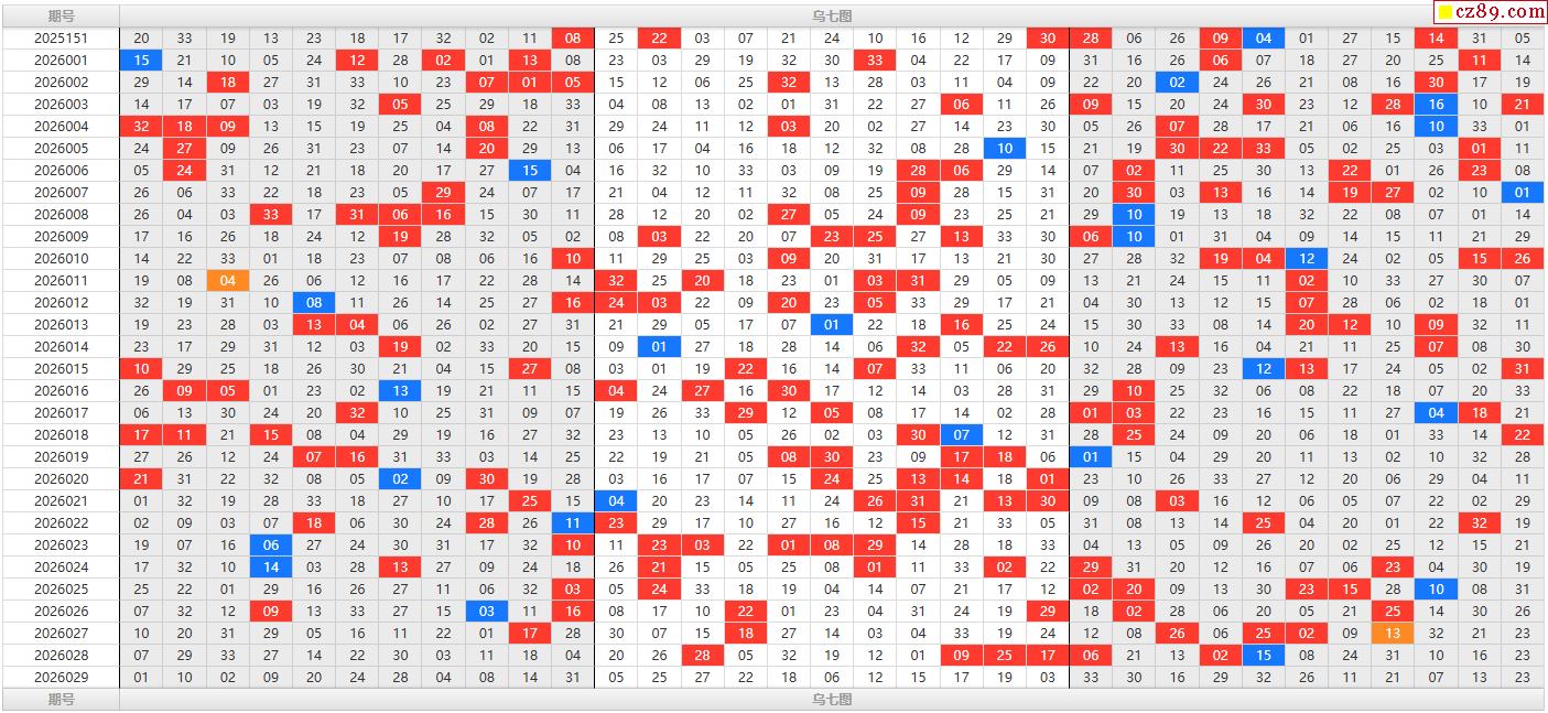 26年福彩双色球029期乌七图表