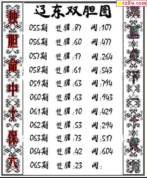 辽东双胆2026065期3d图谜
