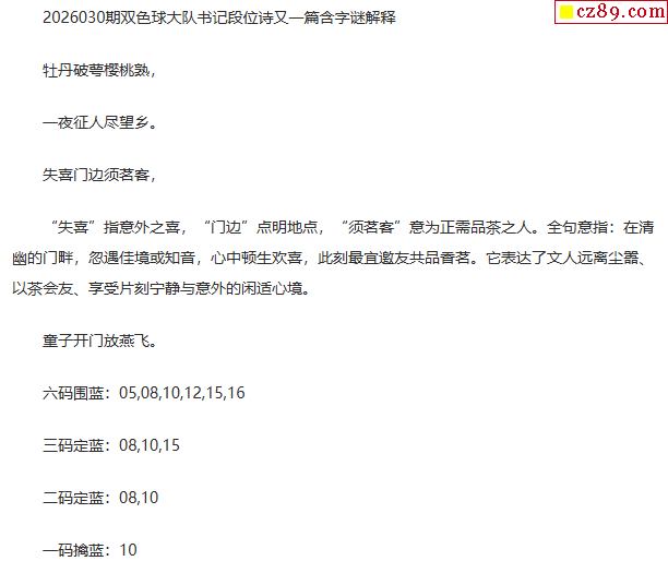 26年福彩双色球030期 左岸春风一语断蓝另版