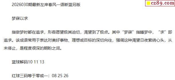 26年福彩双色球030期 左岸春风一语断蓝另版