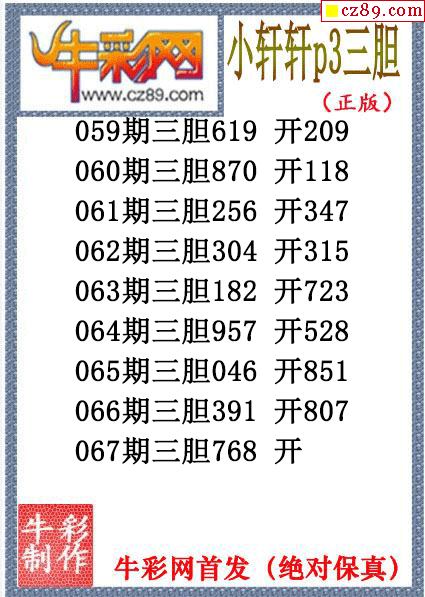 神彩飞扬三胆067期体彩P3图谜(原创)