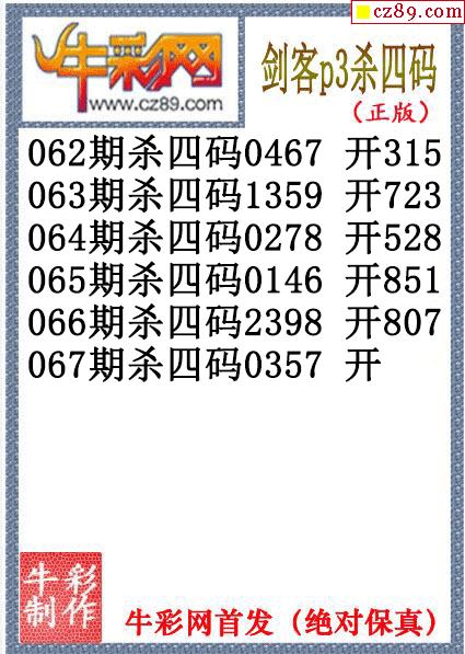 26年067期公孙宇P3杀码图